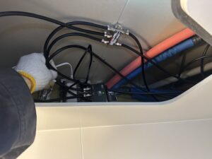 ブースターの電源は浴室天井裏の分配器のところに
