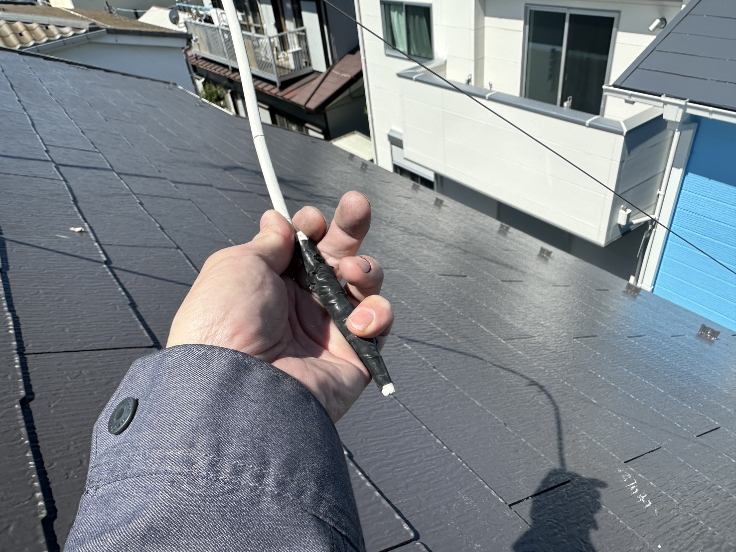 屋根上でケーブルとケーブルをジョイントした部分の防水が