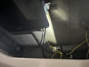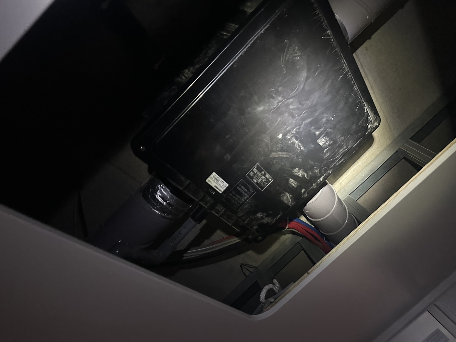 浴室の天井の扉をあけたところに中間ダクト換気扇の